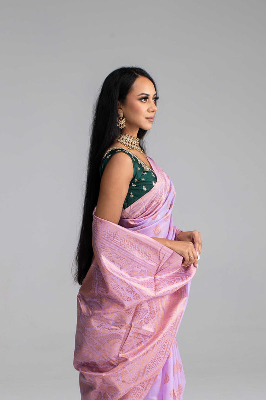 Lavender Cotton Saree with Gold Jari & Butta Work